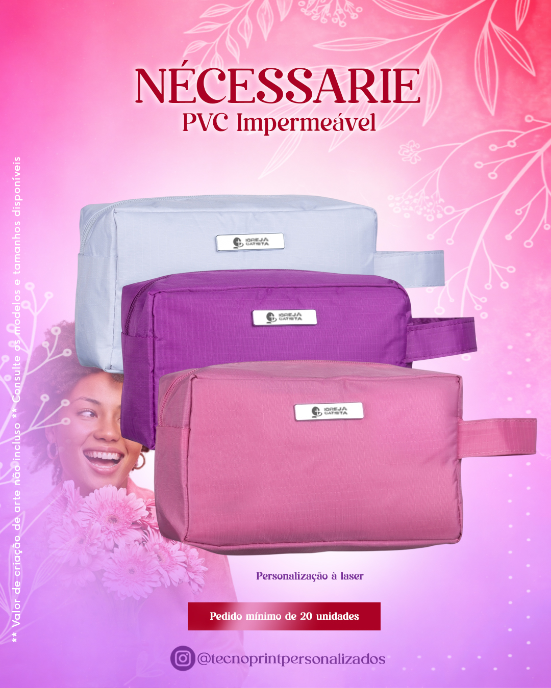 3️⃣ A forma de personalização pode variar conforme o material escolhido;